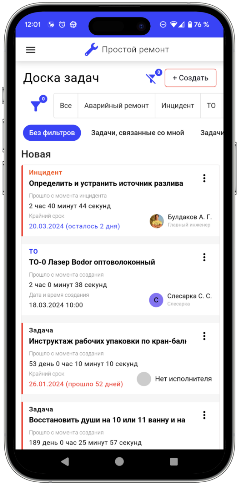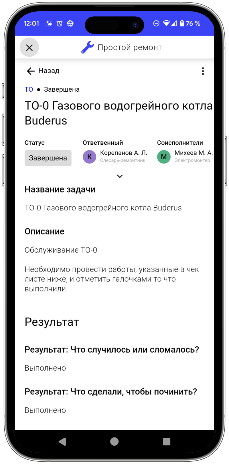 - Фиксация всех задач и ответственных, чтобы всегда было понятно, кто и когда занимался ремонтом.